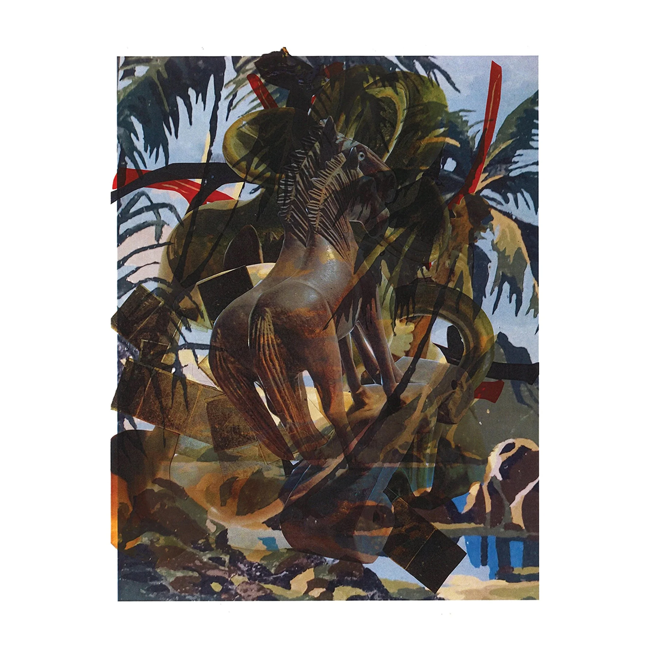 Today, that practice of reassembly manifests across mediums: drawing, collage, sculpture, print, video – the list goes on. His works exist in the glorious grey area between question and answer, between realism and abstraction, between love and critique. Often examining Cayman’s ‘plastic paradise’ image, Tatum exposes how this tourism facade risks flattening the complexities of an entire island nation.