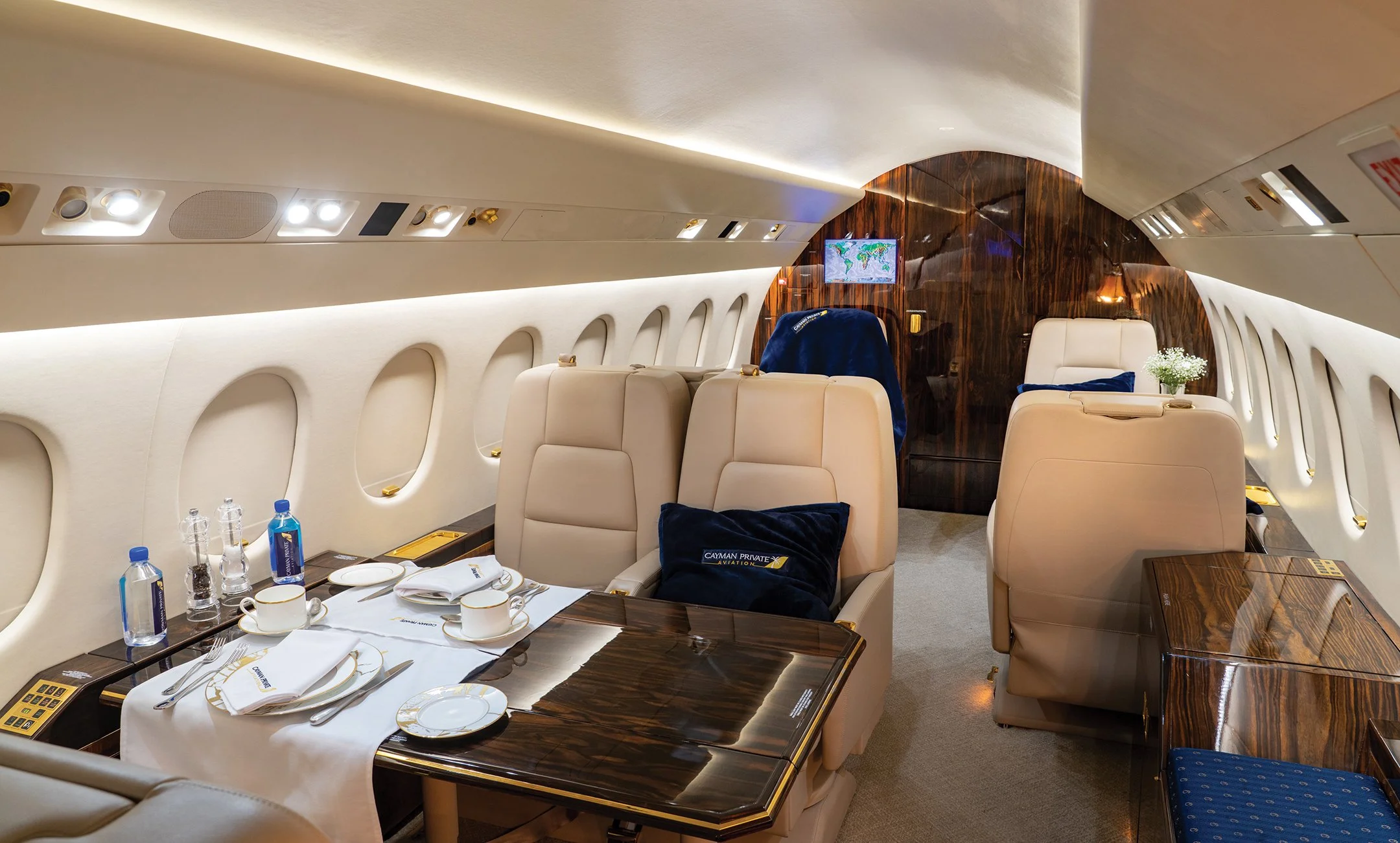 Cayman Private Aviation operates a Dassault Falcon 900, which seats a maximum of 12 passengers. With a range of 4,000 nautical miles or nine hours of non-stop flying time, passengers can fly direct to destinations in North and South America and throughout the Caribbean. Charters to European destinations are also possible, with a quick touchdown for refuelling en route. Luxuriously fitted out and equipped with extra wide seats and folding tables, this private aircraft offers plenty of space to work, move around, or sleep, ensuring the flying experience is a comfortable and enjoyable one from take-off to landing.
