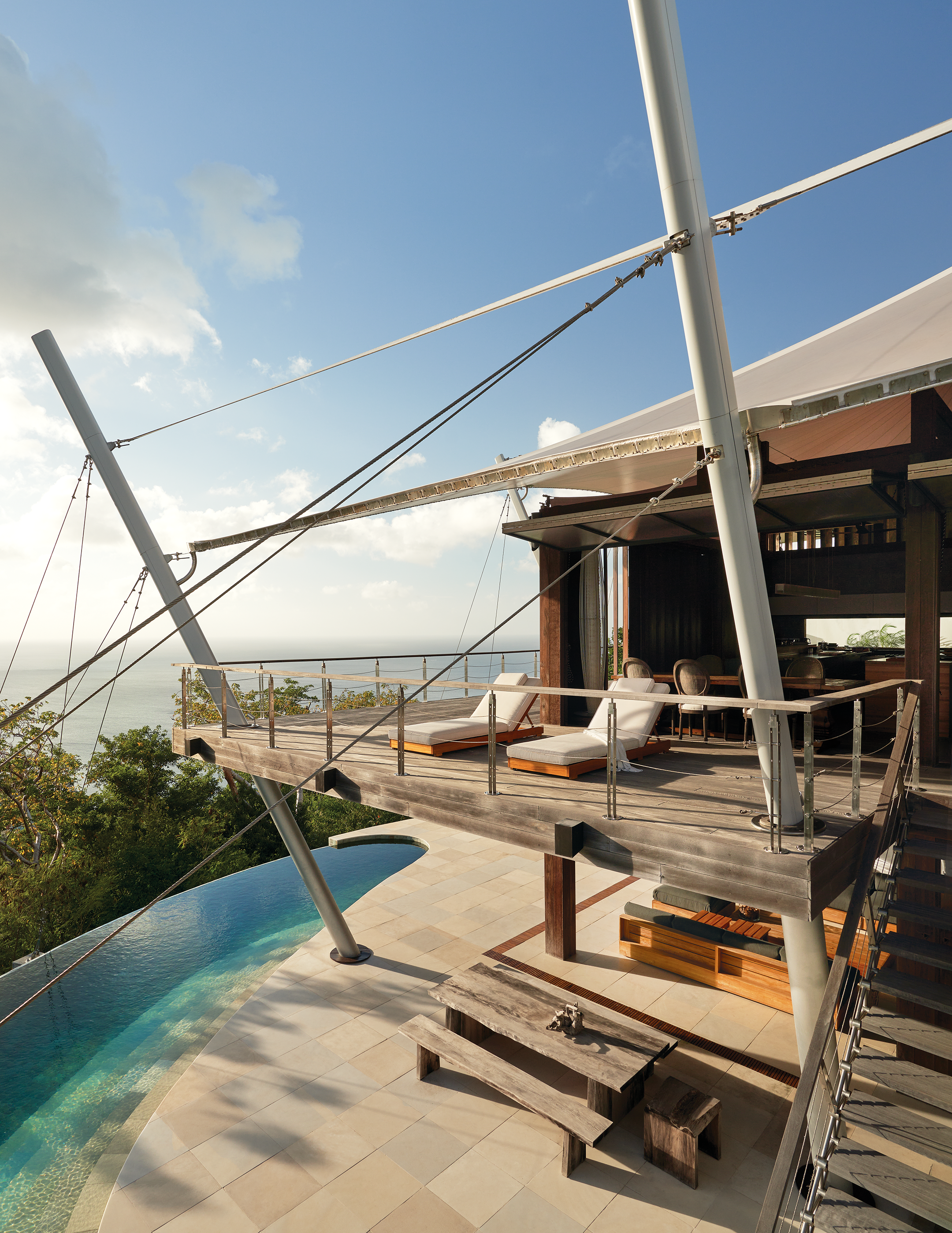 On an early foray inland, they had seen the sloping two-acre plot of land, 650 feet above sea level, with glorious views down into Admiralty Bay and Friendship Bay and along the island chain. Each time they returned to the island, they would hike up the mountain and admire the land all over again – but for two years, they resisted the urge to purchase it. Once they did though, their innate design instincts kicked in.